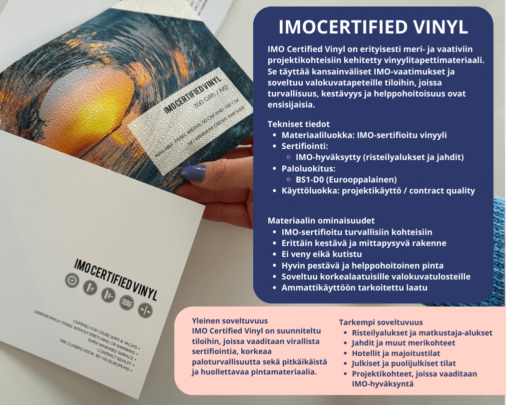 IMO Certified Vinyl – sertifioitu kuvatapetin materiaali