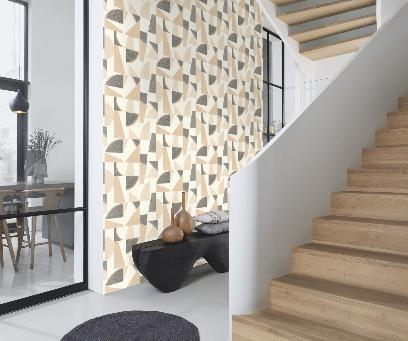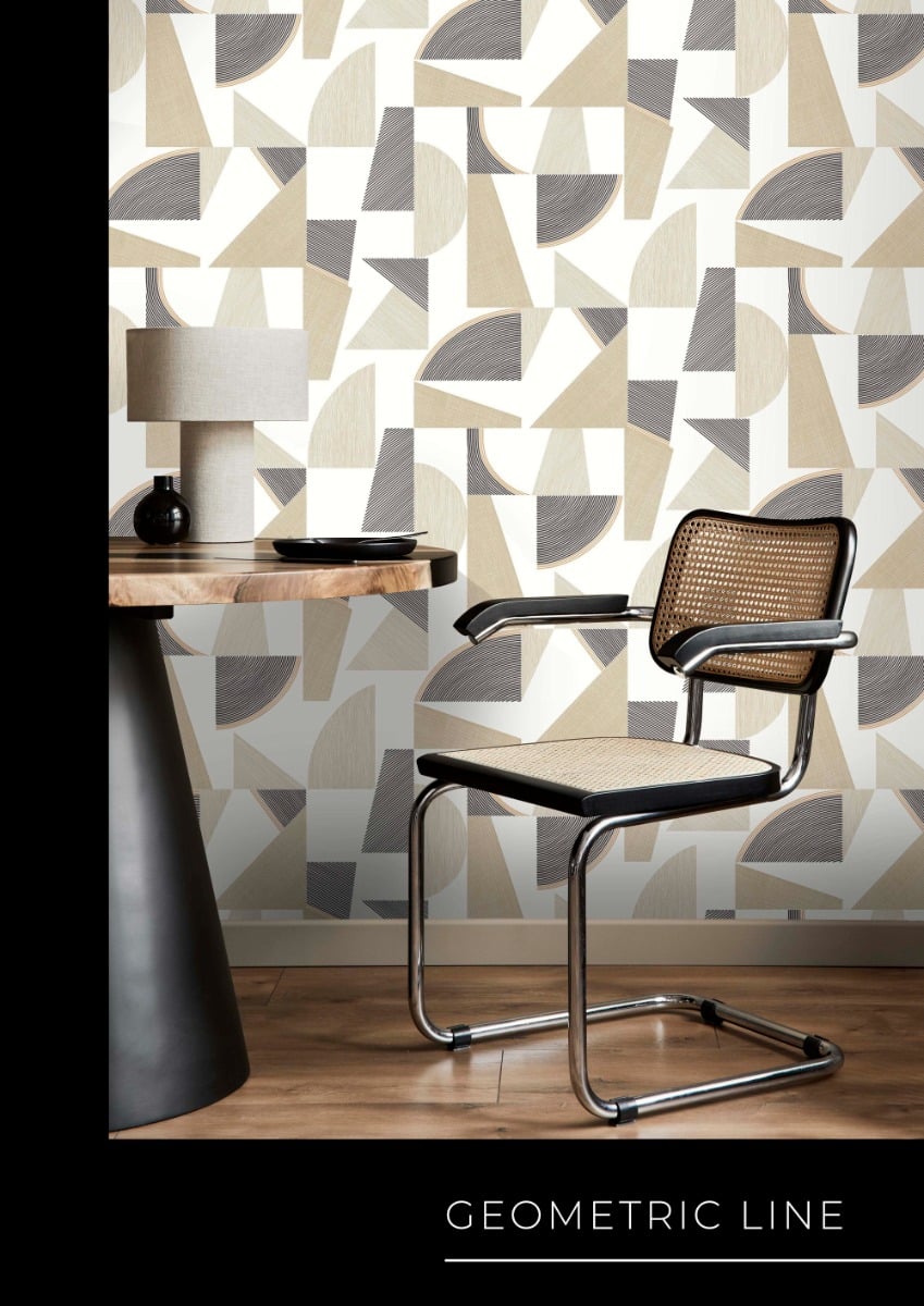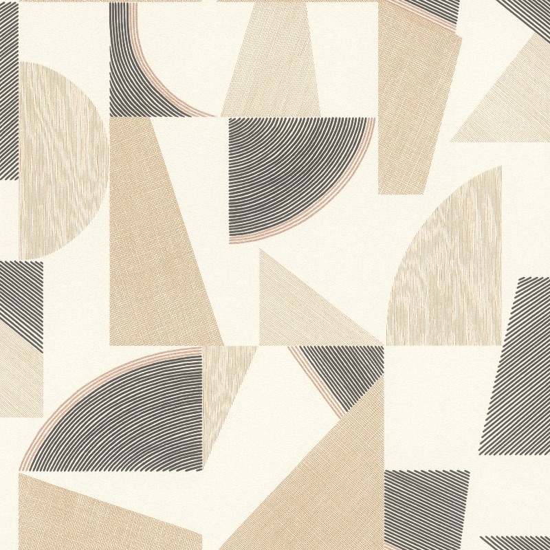Beltesto beige geometrinen tapetti 793611 on nykyaikaisen sisustajan varma valinta, joka tuo tilaan dynaamista ilmettä ja arkkitehtonista selkeyttä. Tapetin kuosi koostuu suurista graafisista kolmioista ja puoliympyröistä, joissa hyödynnetään taitavasti erilaisia viivarakenteita ja pintoja. Värimaailma on harmoninen yhdistelmä lämmintä beigeä, puhdasta valkoista ja kontrastia tuovaa tummanharmaata, mikä tekee kokonaisuudesta samanaikaisesti näyttävän ja levollisen. Tämä tapetti on erinomainen valinta olohuoneen trendikkääksi tehosteseinäksi tai työhuoneeseen luomaan inspiroivaa ja jäsenneltyä tunnelmaa.