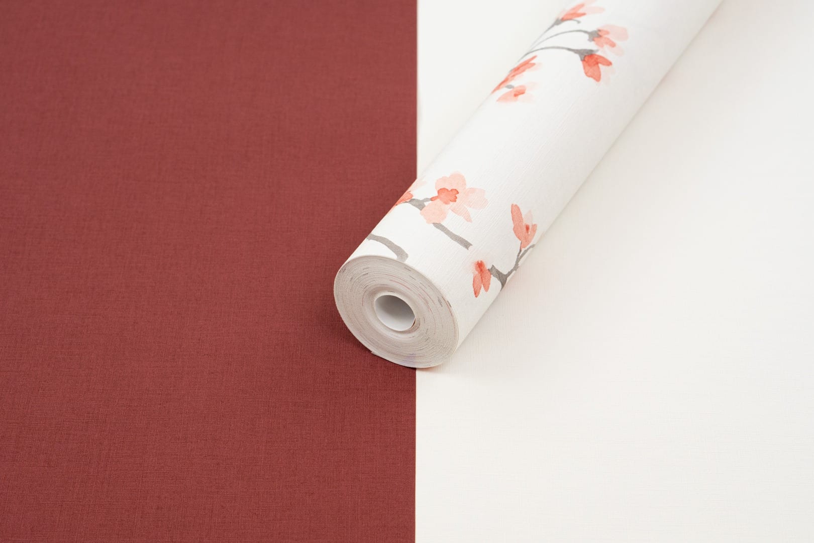 Beltesto beige kirsikankukka tapetti 792720 on hienostunut sisustusvalinta, joka ammentaa inspiraationsa japanilaisesta estetiikasta ja luonnon rauhoittavasta voimasta. Tapetin pohjaväri on lämmin ja valoisa beige, jonka pintaan on painettu hienovarainen, kangasmainen pellavatekstuuri tuomaan tilaan pehmeyttä ja syvyyttä. Tätä eläväistä taustaa vasten nousevat sirot kirsikankukan oksat, joiden kukinnot hehkuvat kauniissa vesivärimäisissä roosan ja korallin sävyissä. Harmaat oksistot antavat kuviolle modernia ryhtiä, tehden lopputuloksesta samanaikaisesti romanttisen ja tyylikkään pelkistetyn. Se on ihanteellinen valinta makuuhuoneeseen tai olohuoneeseen, jonne halutaan luoda levollinen ja hienostunut ilmapiiri.
