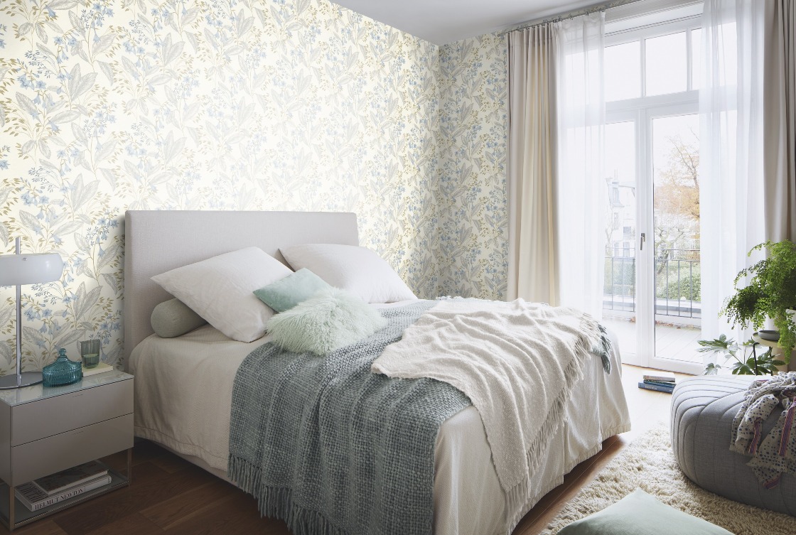 Beltesto kermanvaalea kukkaköynnös tapetti 794441 on hienostunut sisustusvalinta, joka yhdistää perinteisen romantiikan ja modernin raikkauden. Tapetin kuosi koostuu siroista kukkaköynnöksistä, joissa esiintyy kauniita sinisen ja vihreän sävyjä kermanvaalealla taustalla. Suuret, luonnosmaisesti toteutetut lehdet ja herkät kukinnot luovat seinälle soljuvan ja ilmavan kokonaisuuden, joka ei hallitse tilaa liikaa, vaan tuo siihen kaivattua harmoniaa. Tämä tapetti sopii erinomaisesti makuuhuoneen rauhalliseksi taustaksi, olohuoneen tunnelman luojaksi tai vaikkapa eteistilaan tuomaan valoisuutta.