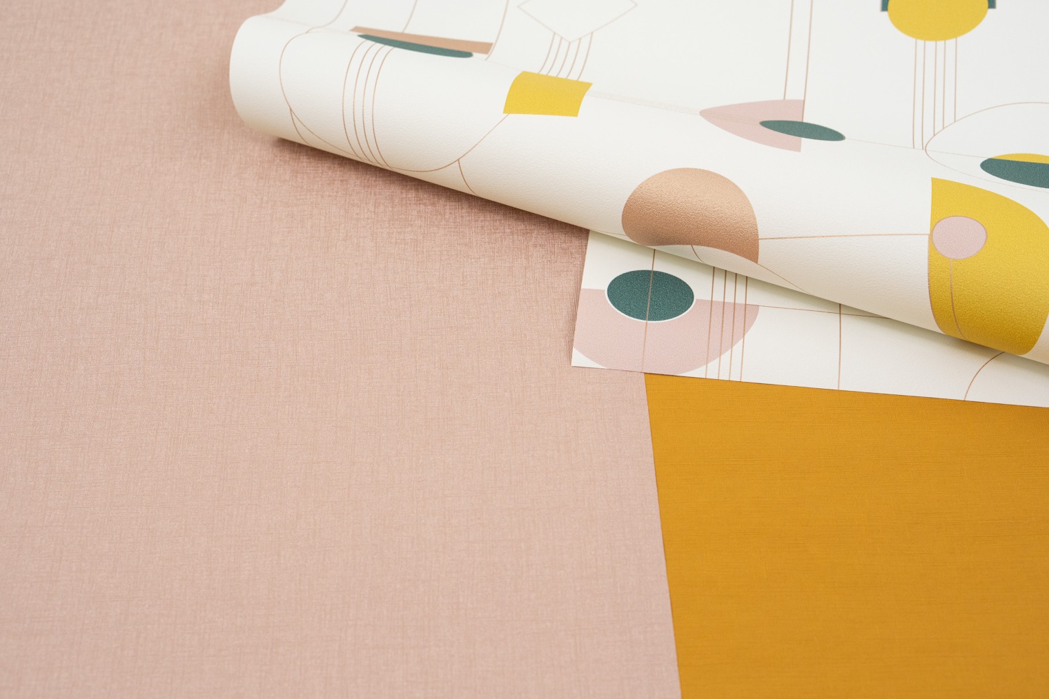 Beltesto monivärinen abstrakti tapetti 795271 on rohkea ja tyylikäs valinta sisustajalle, joka haluaa tuoda tilaan modernia luonnetta ja geometrista rytmiä. Tämän tapetin kuosi yhdistelee leikkisästi erilaisia muotoja, kuten puoliympyröitä, suorakaiteita ja ohuita linjoja, luoden seinälle tasapainoisen ja inspiroivan kokonaisuuden. Väripaletti koostuu raikkaasta keltaisesta, rauhoittavasta turkoosista ja pehmeästä roosasta, jotka erottuvat kauniisti puhtaanvalkoiselta pohjalta. Se on ihanteellinen valinta työhuoneeseen, moderniin olohuoneeseen tai lastenhuoneeseen, jossa halutaan suosia luovuutta ruokkivaa ympäristöä.