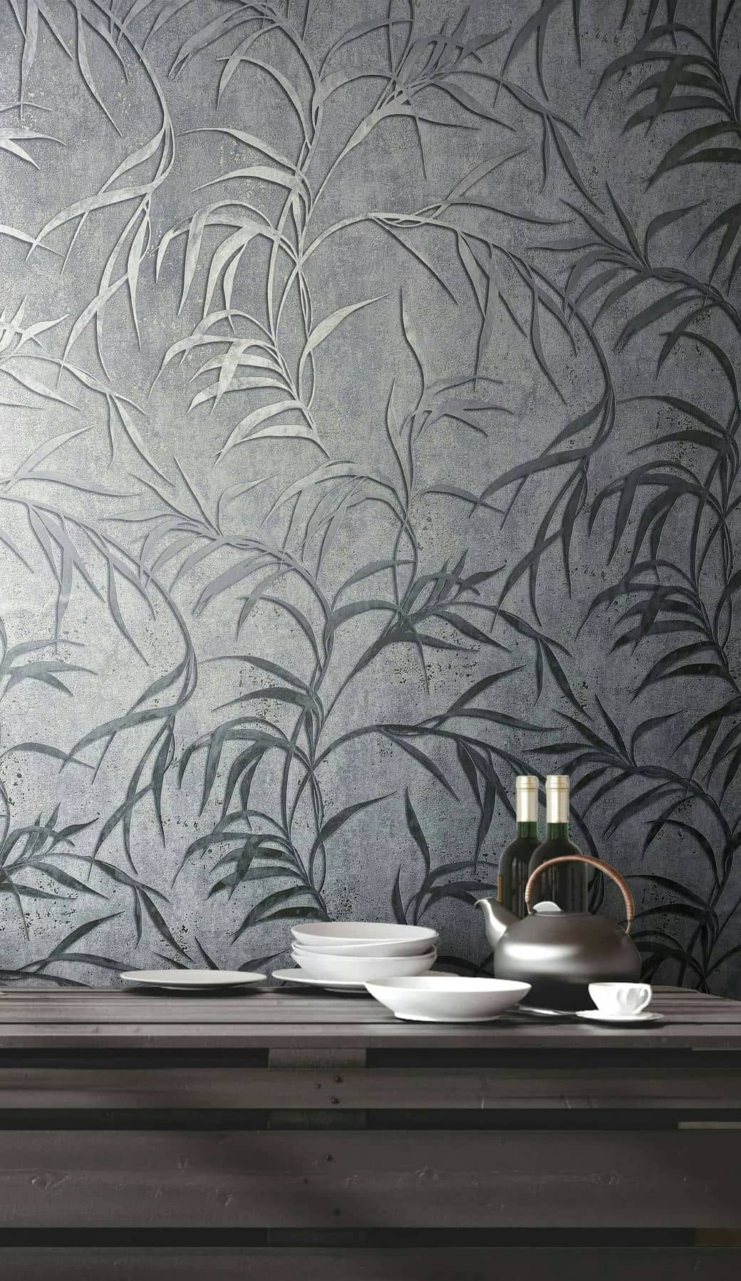 City Glow harmaan ja hopean sävyinen metallinhohtoinen lehtikuosinen betonitapetti 34287. Tapetissa on pintastruktuuri ja metallinhohtoa. Tapetit ovat laadukasta vinyylipintaista kuitukangasta, joka on erittäin kestävää ja sitä voi puhdistaa pehmeällä harjalla ja miedolla astianpesuaineella. Suosittelemme käyttämään asennuksessa valmisliimaamme.