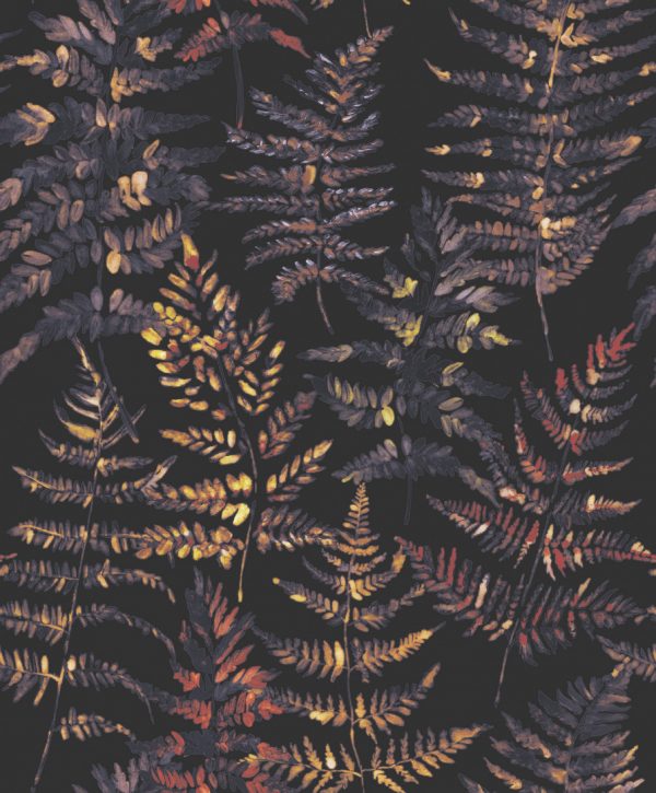 Essentials Ecodeco mustapohjainen lehtitapetti