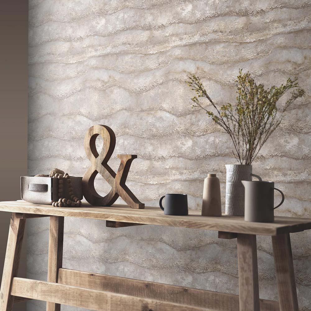 Focus malliston ruskea graafinen tapetti. Tapetissa on kohokuvioitu mattapintainen pintatekstuuri.
