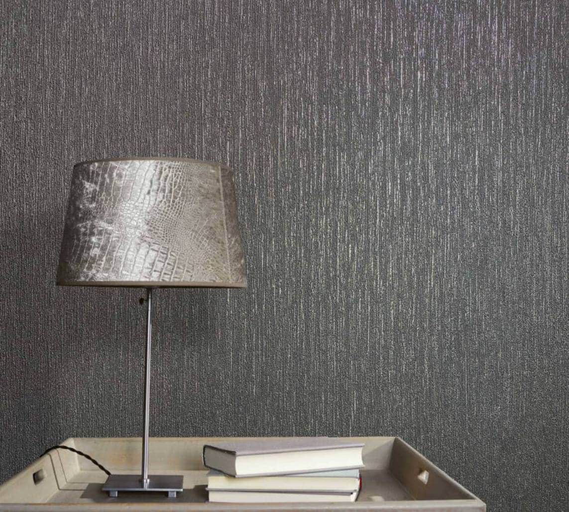 Jackie tummanharmaa yksivärinen tekstuuritapetti, jossa metallinhohtoa. Tapetti 82382 on pintastruktuuriltaan raidallinen.