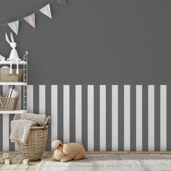Kids Walls ja Hailey tummanharmaa valkoraidallinen tapetti.