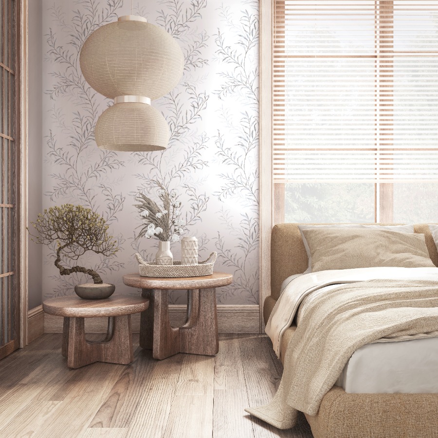 Oriana vaaleansininen lehtitapetti 89017 on täydellinen valinta sinulle, joka haluat yhdistää kodissasi ilmavuuden ja luonnon orgaanisen pehmeyden. Tämän tapetin puhtaanvalkoinen tausta luo tilaan välitöntä valoisuutta ja avaruutta, kun taas sirot, ylöspäin kurottavat oksistot tuovat seinälle eloisaa kerroksellisuutta. Lehvästön sävyt ovat hienostunut sekoitus vaaleansinistä, usvaista harmaata ja hiekan vivahteita, jotka on toteutettu pehmeällä, lähes läpikuultavalla vesiväritekniikalla. Lopputulos on äärimmäisen levollinen ja hienovarainen, mikä tekee siitä erinomaisen taustan niin makuuhuoneeseen kuin olohuoneeseenkin.