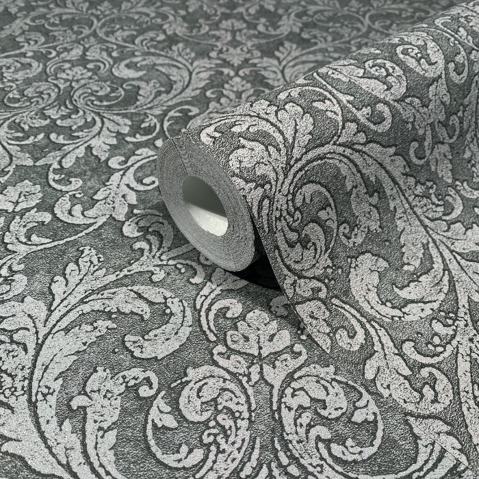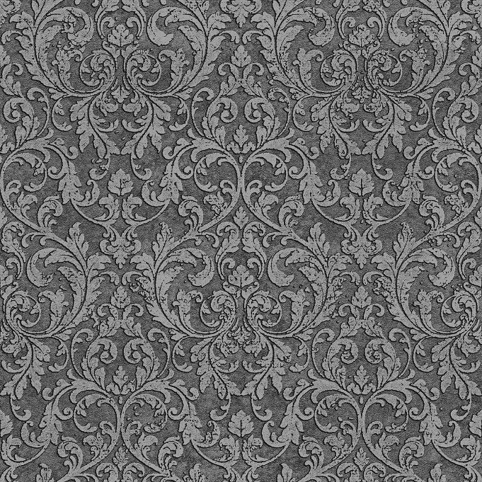 Pompöös Provence Ornament tummanharmaa 35630 on ornamenttikuvoinen tapetti tummanharmaalla pohjalla