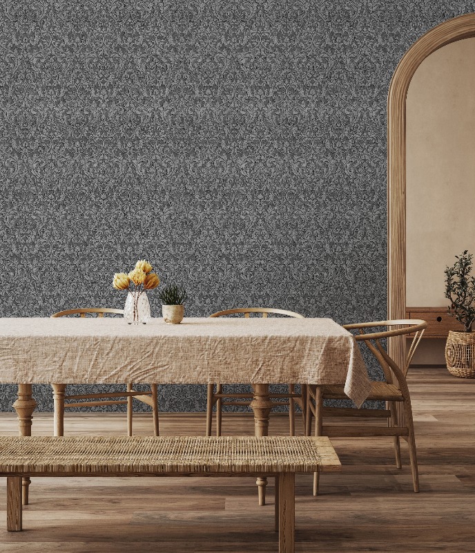 Tummanharmaa väri tekee tästä ornamenttitapetista erittäin trendikkään ja hienostuneen valinnan. Se on täydellinen valinta olohuoneen näyttäväksi tehosteseinäksi, makuuhuoneen intiimiksi taustaksi tai ruokailutilaan, jossa halutaan korostaa persoonallista ja arvokasta tyyliä. Tumma pohjaväri nostaa ornamenttikuviot upeasti esiin, luoden seinälle eläväisen ja kolmiulotteisen vaikutelman. Korkealaatuinen kuitutapetti (non-woven) takaa vaivattoman asennuksen: liisteri levitetään suoraan seinään ja tapetti nostetaan paikalleen kuivana. Materiaali on erittäin kestävää, ja sen pinta on pyyhittävissä kostealla liinalla, mikä takaa seinillesi pitkäikäisen ja laadukkaan ilmeen. Pompöös Provence Ornament tummanharmaa tapetti on varma valinta sisustajalle, joka haluaa yhdistää klassisen loiston, modernin värimaailman ja korkean laadun.