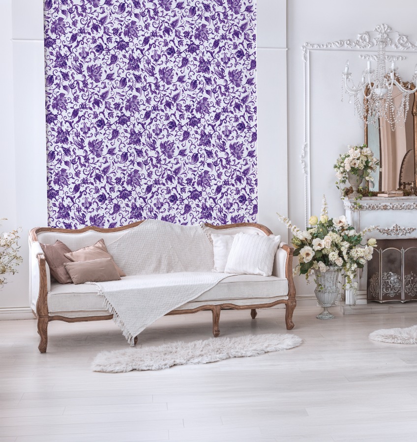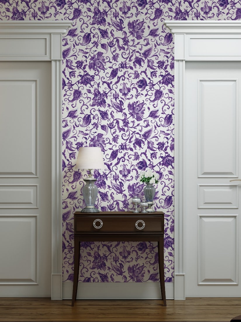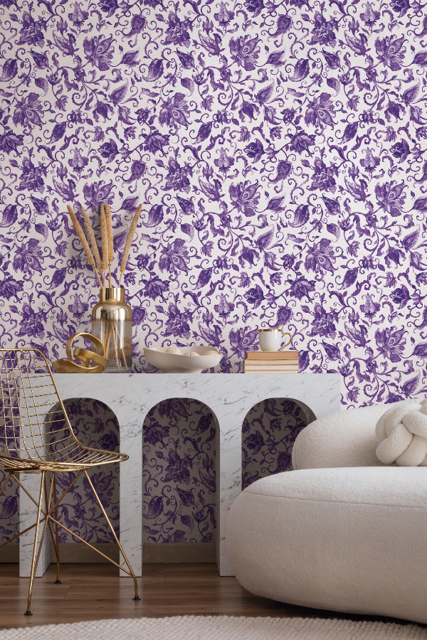 Pompöös Provence Petal violetti 35640 tapetti huokuu klassista eleganssia upealla kukkakuvioinnillaan