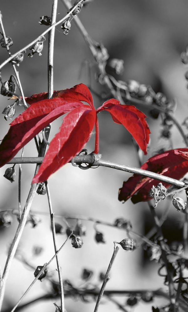 Dimex 0110 Red Leaves on Black valokuvatapetti