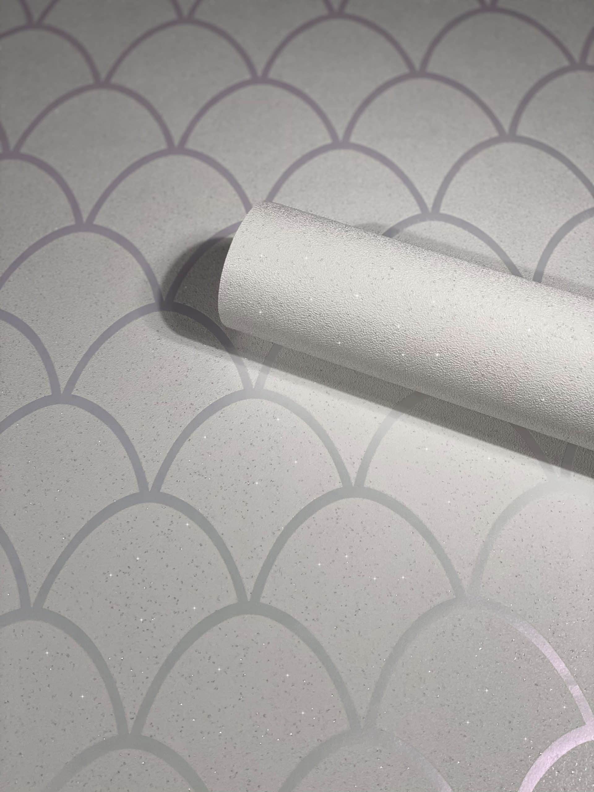 Schöner Wohnen New Spirit graafinen valkoinen tapetti, jossa on graafisia valkoisia kuvioita ja hieman glitteriä pinnalla.