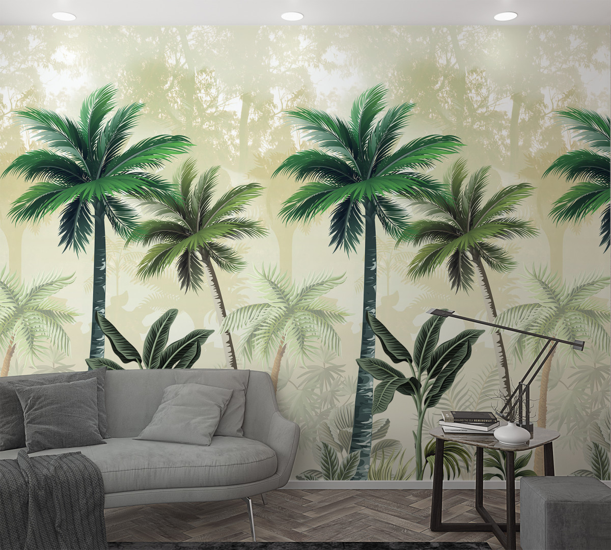 Graafinen Smart Art Easy Palmu valokuvatapetti 47202. Yhdestä rullasta tulevan kuvakokonaisuuden leveys : 1,59 m ja korkeus: 2,70 m. Kuviota on mahdollista jatkaa leveyssuunnassa.