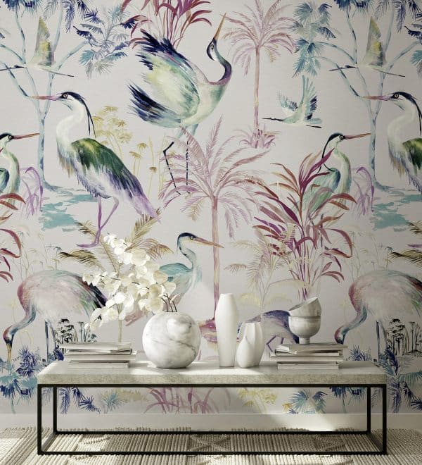 Smart Art Gallery-malliston Fedora on kaunis kurkitapetti vihreän ja vaaleanpunaisen pastelli sävyissä. Kuvakokonaisuuden leveys: 2,65 m ja korkeus: 3,4 m koostuu 5 paneelista. Kuviota on mahdollista jatkaa leveyssuunnassa.
