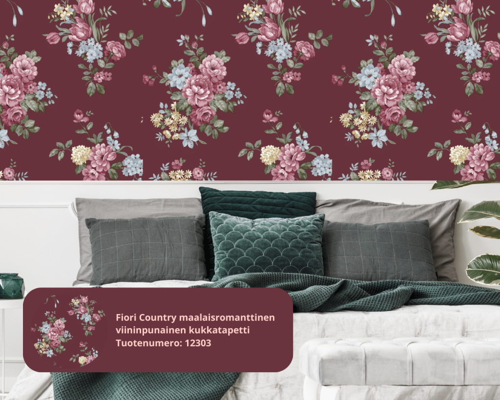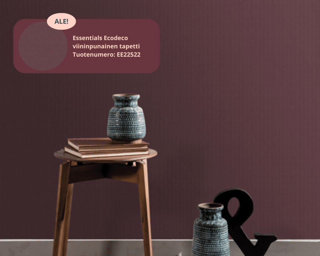 Viininpunainen sisustus ja burgundi-tapetit ovat täydellinen valinta sinulle, joka haluat kotiisi lämpöä, syvyyttä ja ajatonta tyyliä. Väri toimii monissa tiloissa ja yhdistyy kauniisti niin vaaleisiin sävyihin kuin luonnonmateriaaleihin. Oli kyseessä sitten viininpunainen tapetti tai jo olemassa olevat burgundyn sävyiset huonekalut, kokonaisuus on helppo rakentaa harmoniseksi.